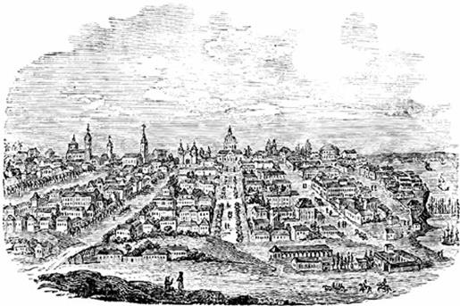 Улицы в городе чрезвычайно неровные и по большей части немощеные или покрытые досками. На некоторых из них стоят плохие деревянные конюшни. Там насчитывается тридцать две церкви, не считая тех, что находятся в женских монастырях, а также полдюжины обительских приютов, в каждом из которых по две, три и более церквей. Предполагаю, что общее количество мест отправления культа достигает восьмидесяти. В городе около 4OOO домов, не считая различные мануфактуры. Его внутренний облик плохо соответствует представлениям о великолепии, которое ожидалось при въезде. В 1813 и 1823 годах его население, по словам Всеволожского, составляло 30 000 человек, но я сомневаюсь, не завышена ли его оценка. Думаю, реально было 20 000 душ, среди них очень много евреев, меньше поляков и малороссов, а основная масса жителей – русские.