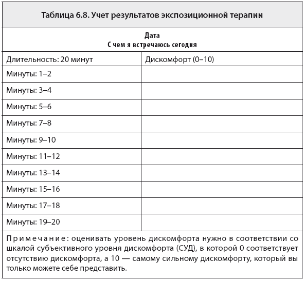 Таблица 6.8. Учет результатов экспозиционной терапии