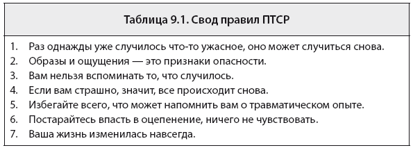 Таблица 9.1. Свод правил ПТСР