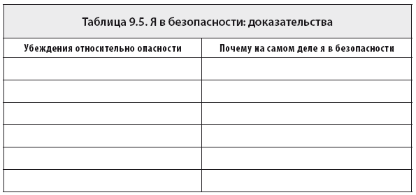 Таблица 9.5. Я в безопасности: доказательства