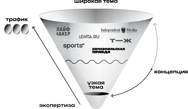 Пример. Сегодня «Комсомольская правда» – самое крупное диджитал-медиа на русском языке. Надо просто это принять и смириться с этим. Там есть материалы буквально обо всем. Они научились вытаскивать трафик из сериалов, которые еще не вышли, – массово делают заглушки с анонсом и описанием. Их не перепрыгнуть. Но если мы хотим получить узкую информацию, мы пойдем не в «Комсомолку», а в нишевое медиа. Например, если мы хотим узнать что-то из доказательной медицины, то пойдем в «Купрум». А если про воспитание ребенка – в «Нет, это нормально». Скорее всего, в каждом случае выберем нишевое медиа.