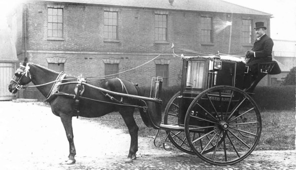 Кэб с полностью закрытой кабиной. На борту написано название транспортной фирмы – владельца экипажа. Примерно на том и передвигались наши герои.