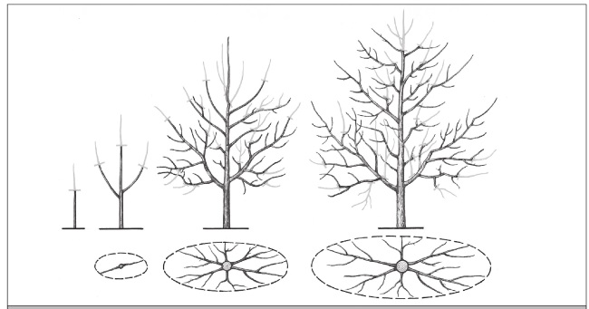 После вступления деревьев в полное плодоношение часть проводника на высоте около 2,5–3 м обрезают на боковую ветвь.