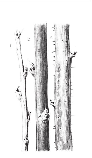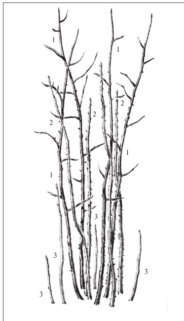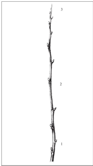 1 – двулетние отплодоносившие ветви; 2 – однолетние ветви; 3 – слабые отпрыски.
