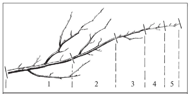 1 – верхушка; 2 – средняя часть; 3– основание ветви.