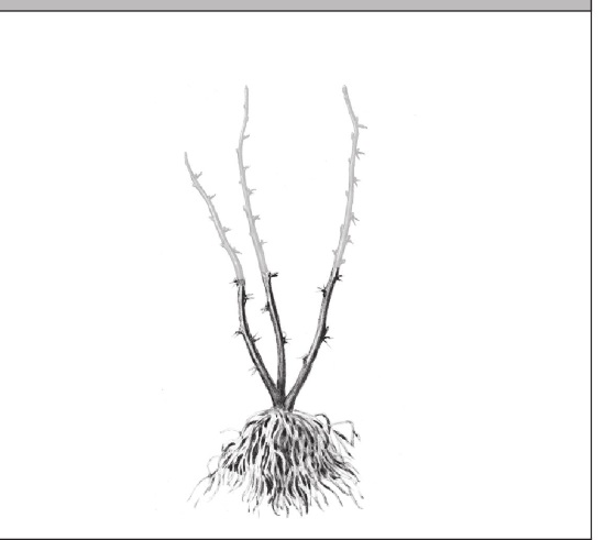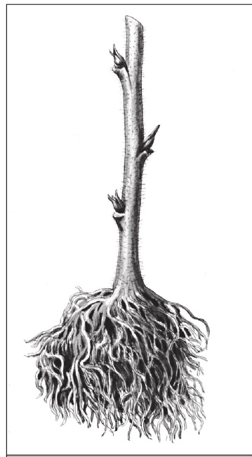 Рис. 326. Саженец черной смородины и его обрезка перед посадкой.