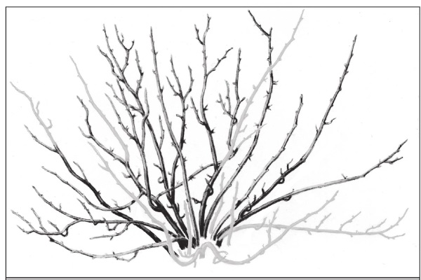 Для предупреждения загущения куста нулевых ветвей оставляют не больше, чем нужно для замены стареющих. Верхнюю невызревшую часть обрезают до здоровой почки.
