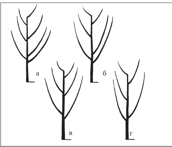 Рис. 125. Возможное размещение основных ветвей в разреженно-ярусных кронах: