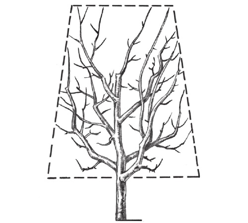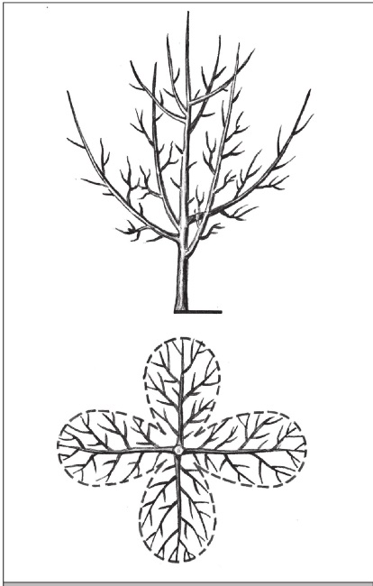 Рис. 129. Умеренно-естественная крона с двумя порядками основных ветвей: