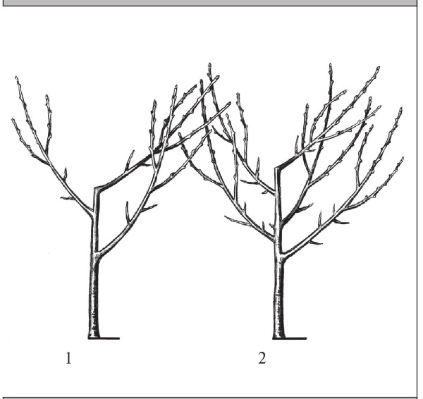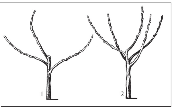 Рис. 133. Вазообразная крона с тремя (1) и пятью (2) основными ветвями.