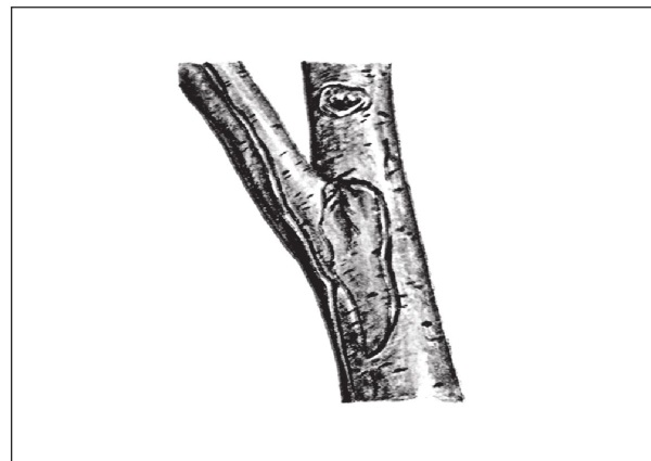 Рис. 242. Отмирание и отделение подмерзшей части ветви.
