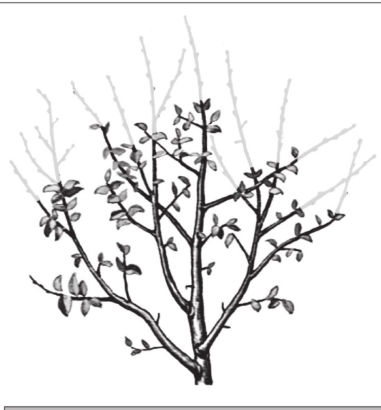 Рис. 244. Подмерзли только верхушки ветвей, обрезают до здоровой древесины, соблюдая правила соподчинения.