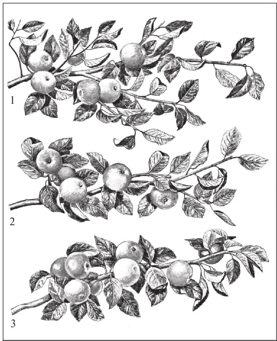 1 – до начала вегетации – рост побегов сильный, плодоношение умеренное; 2 – в период цветения – рост побегов умеренный, плодоношение умеренное; 3 – в начале июня – роста побегов практически нет, плодоношение обильное.