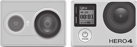 Xiaomi Yi (слева) и GoPro Hero 4 (справа)