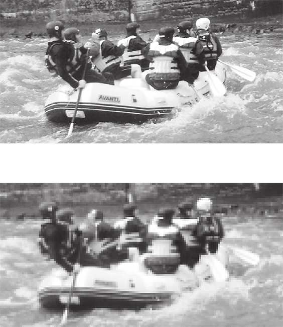 Упрощенный пример того, каким будет качество фотографии, полученной с камеры с реальным количеством мегапикселей (вверху) и завышенным в несколько раз (внизу)