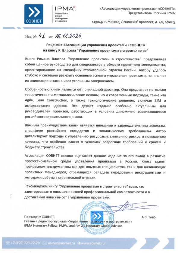 Эта книга написана для того, чтобы предложить систематизированный и профессиональный взгляд на управление строительными проектами в России. В условиях сложного и динамично развивающегося рынка строительства, где каждое решение имеет долгосрочные последствия, владение методами и инструментами управления проектами становится необходимостью для успеха. Данная книга нацелена на формирование фундаментального понимания всех этапов проектного управления, начиная от инициации проекта и заканчивая его завершением. Здесь представлена информация о стратегиях и практиках, которые помогут вам оптимизировать ресурсы, сократить издержки, минимизировать риски и повысить качество результата.