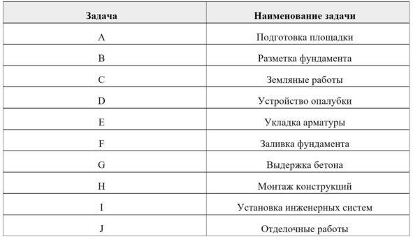 – Определить продолжительность выполнения каждой задачи.