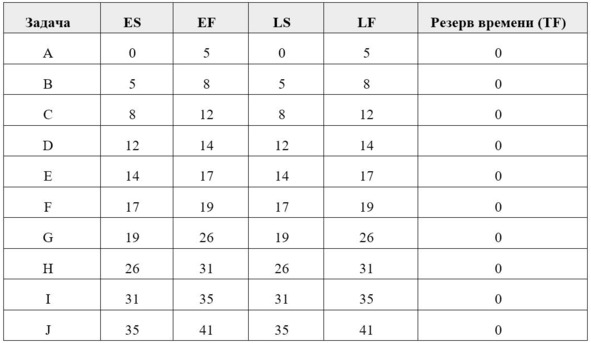 – EF = ES + длительность = 0 +5 = 5. Полный расчет для всех задач: