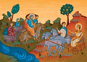 Взяв повозки, которые дал им фараон, братья отправились домой. Иосиф ещё дал им с собой еду, новую одежду и деньги. Отцу он послал на десяти ослах всё, чем богата египетская земля, а на десяти ослицах – зерно и хлеб.