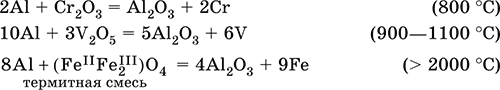 Алюминий восстанавливает другие металлы из их оксидов (промышленно важный метод — алюминотермия):