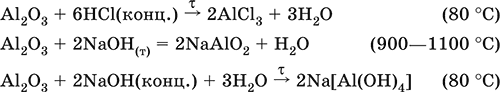 Al(ОН)3 + NaOH(т) = NaAlO2 + 2Н2O (1000 °C)
