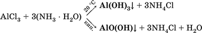 Для получения осадка Al(ОН)3 щелочь обычно не используют из-за легкости перехода осадка в раствор (см. выше), а действуют на соли алюминия гидратом аммиака. При комнатной температуре образуется Al(ОН)3, а при кипячении – менее активный АlO(ОН):