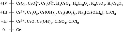 Хром – элемент 4-го периода и VIБ-группы Периодической системы, порядковый номер 24. Электронная формула атома [18Ar]3d54s1, характерные степени окисления +VI, + III и 0.