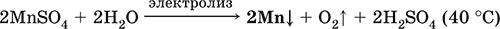 Наиболее чистый марганец выделяют электролизом раствора из солей марганца(II), например: