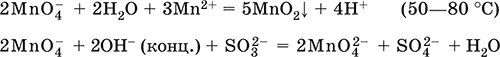Качественная реакция на ион MnO4- – исчезновение фиолетовой окраски раствора при восстановлении в кислотной среде.