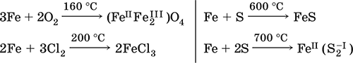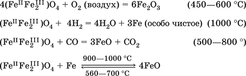 3Fe + 4Н2O (пар) = (FeIIFe2III)O4+ 4Н2 (800 °C)