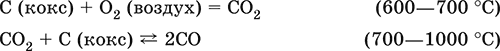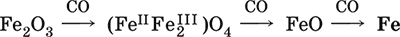 в) восстановление оксидной руды угарным газом СО последовательно (см. рубрики соответствующих оксидов):