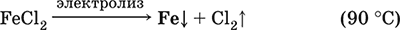 Получение чистого железа в промышленности – электролиз раствора солей железа, например: