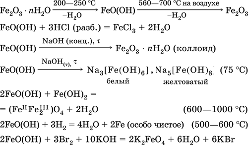 Получение: осаждение из раствора солей железа(III) гидрата Fe2O3 nН2O и его частичное обезвоживание (см. выше).