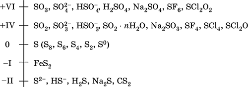Шкала степеней окисления серы:
