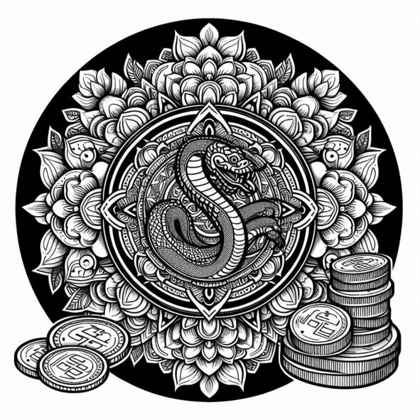 Вашему вниманию предлагаются 20 уникальных мандал, в которых удачно сочетаются образы Змеи и символы денег, сокровищ, богатства. Раскрашивание оригинальных мандал может стать увлекательным занятием в долгие зимние вечера. Концентрация на запутанных узорах помогает снизить уровень тревожности и улучшить эмоциональный фон, способствует глубокому расслаблению и снятию стресса.