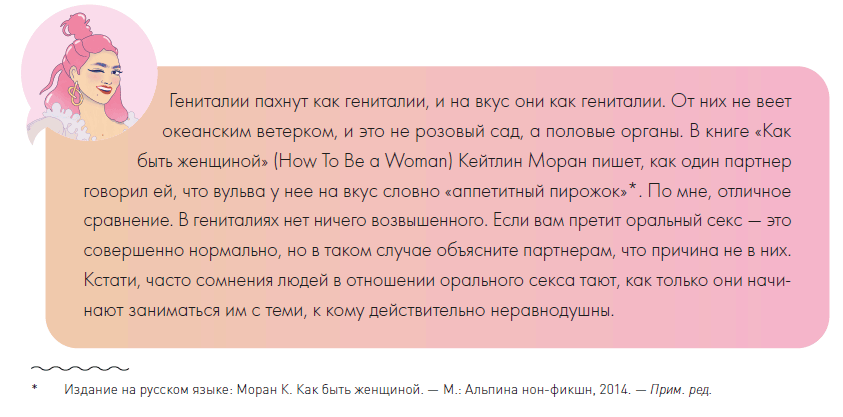 Этот вид секса в каком-то смысле самый интимный, и в нем куда важнее не изощренная техника языка, а внимание к партнеру и искренняя вовлеченность в ласки. Лучший общий совет, который я могу дать, – представьте себе, чтобы вы целуетесь с гениталиями. Ведь поцелуи так разнообразны: они бывают разной глубины, интенсивности и темпа – и все эти качества можно перенести в оральный секс.