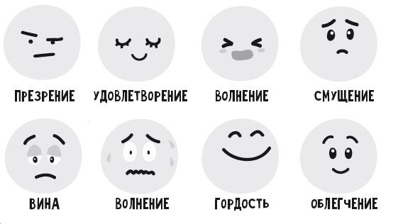 А защитить границу, представь себе, мне помогла эмоция злости. Эмоция, которую так же, как эмоцию страха и другие негативные эмоции, люди не очень-то жалуют. А зря. Порой они бывают жизненно необходимы. К примеру, если бы я тогда не разозлилась и не расправилась с первой красавицей и первой тупицей класса, она до конца школы издевалась бы надо мной, причем с каждым разом все изощреннее и изощреннее. А я бы в психологическом отношении стала настоящей амебой. Нет-нет, я говорю спасибо злости, благодаря которой был дан старт постепенному превращению меня в человека. Об этом ты еще узнаешь. Пока же я попрошу тебя назвать эмоции, которые тебе известны. Разумеется, ты с легкостью их перечислишь: радость, удивление, гнев (злость), страх, печаль, отвращение, презрение. Эти эмоции называются базовыми, то есть присущими всем людям.