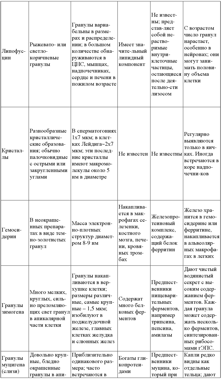 Морфологические характеристики различных типов цитоплазматических включений представлены в табл. 5.1.