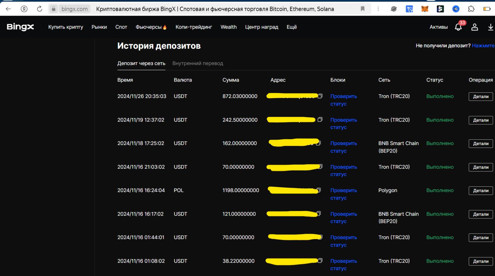 Вскоре полученные средства будут отображаться в разделе «Мои активы» на BingX. Скорость поступления зависит от загруженности конкретной блокчейн-сети.