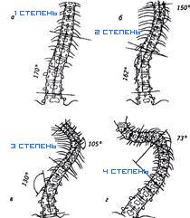 Существует 4 степени сколиоза: