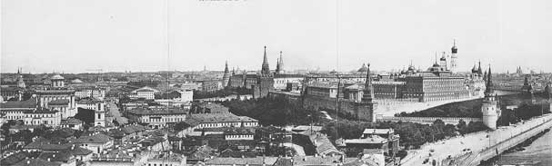 Круговая панорама Москвы с храма Христа Спасителя. Фототипия «Шерер, Набгольц и Ко». 1867. Фрагмент. Слева – дом Пашкова. Справа – Кремль и Большой Кремлевский дворец