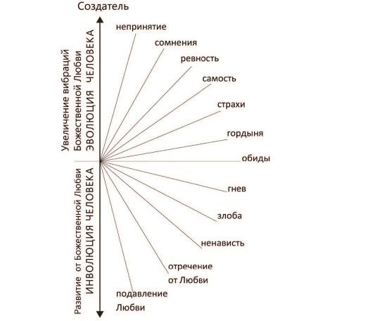 Ремарка: эмоция эгоизма к развитию на Божественных уровнях не имеет ничего общего, т. к. генерирование Человеком этого проявления находится на других вибрационных уровнях в чувствовании, восприятии.