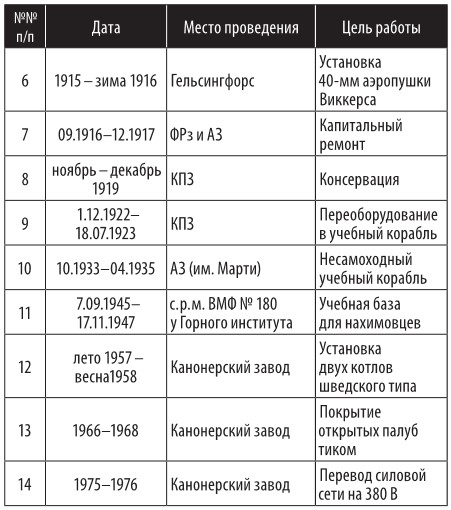 После переоборудования крейсера в учебную базу Нахимовского училища личным составом корабля периодически производился осмотр корпуса, устройств и корабельных систем.