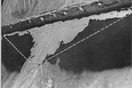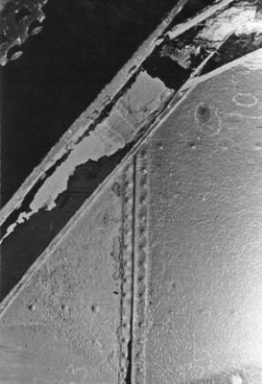 Разрушение кницы соединения флора с третьим стрингером, 52 шп., левый борт