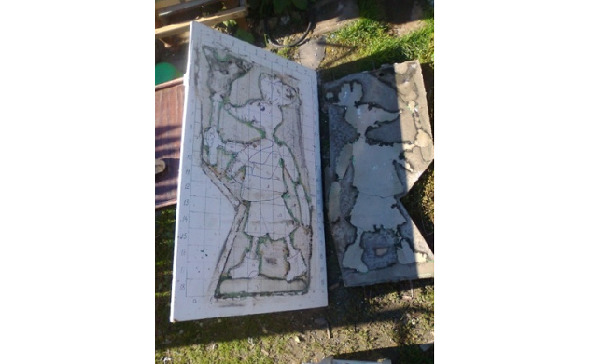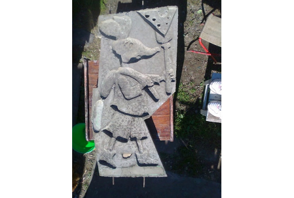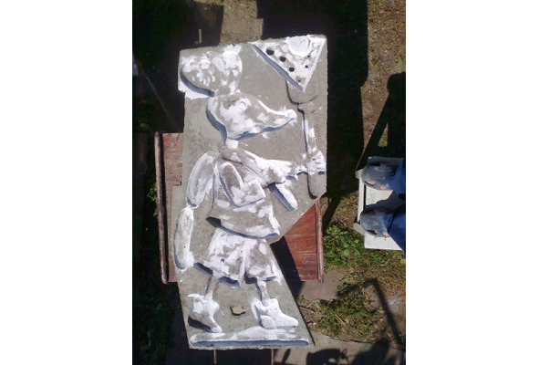 2.3.1. Оригинал рельефной скульптуры изготавливается в форме, приготовление которой было описано в предыдущем разделе 2.1. Принцип изготовления оригинала аналогичен принципу изготовления формы: смазанную отработкой внутреннюю поверхность изготовленной формы заполняют бетоном (состав компонентов аналогичен, см. раздел 2.2.2).