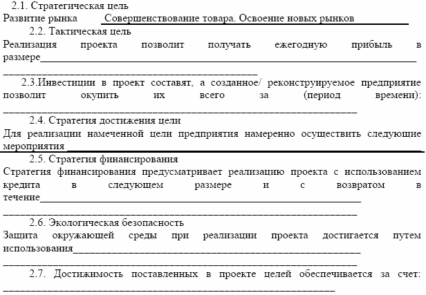 Типовой текст-шаблон бизнес-плана: (рекомендован Минэкономики РФ)