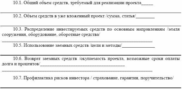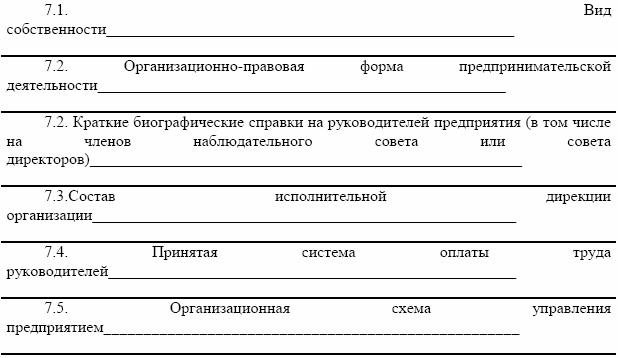 9. Часто для соблюдения конфиденциальности авторы бизнес-плана не указывают владельцев предприятия и долю каждого в уставном капитале, хотя эти данные вполне можно показать в приложении. Ведь их все равно нужно предоставлять при проведении конкретных переговоров с кредиторами.