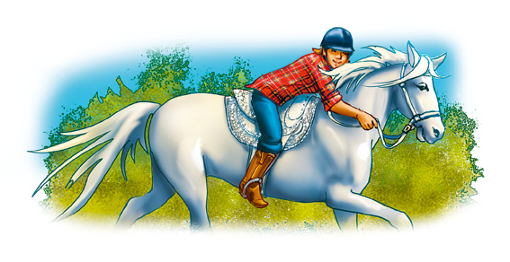 Но бабушка ничего не ответила. Вместо этого она надела уздечку и седло на Серебряного Ветра, затянула ремни покрепче и помогла Яне сесть верхом и закрепить на голове шлем для верховой езды.