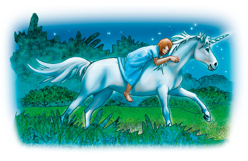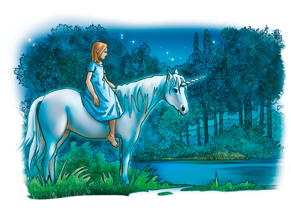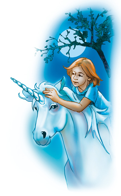 Яна взобралась на высокий камень и села на коня. Единорог пустился рысью.