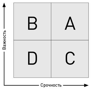 ● C – срочные, но не такие уж важные вопросы; ими следует заниматься, только когда все важное уже сделано.